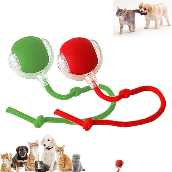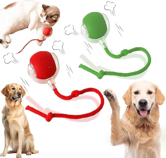 【Interactive Rolling Dog Ball:】Rolling Ball Dog Toy is the ultimate entertainment for furry friends. Just press a button and automatic dog toy will start spinning, moving and shaking, attracting your dog to chase and catch it.This interactive rolling dog ball features a twistable, secure shell that doesn't easily come off, with added rope space that enhances the fun of playing. It is ideal for grabbing and tugging, and the moderate sound it emits can excite and energize the puppy.