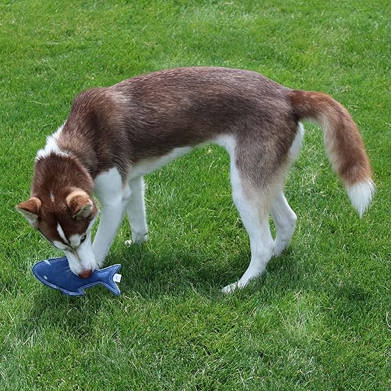 Dura-Fused Leather Fish will be your dog's favorite catch. Super durable leather and jute fabric fused together for added strength. Double stitched seams with heavy duty thread add extra durability. Made from real leather, fully stuffed and a squeaker for even more fun.