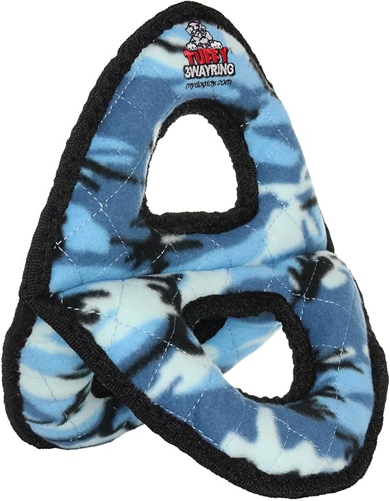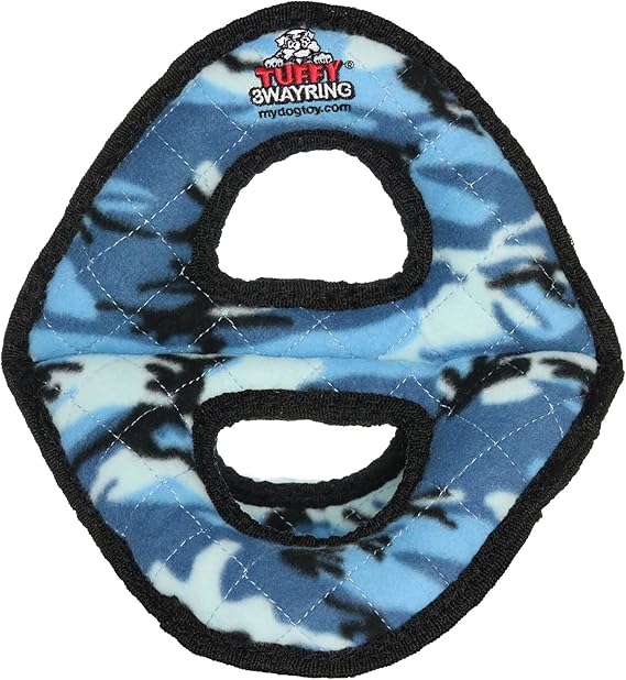 TUFFY- World's Tuffest Soft Dog Toy-Ultimate 3Way Ring-Camo Blue -Squeakers -Multiple Layers. Made Durable, Strong & Tough. Interactive Play (Tug, Toss & Fetch). Machine Washable & Floats