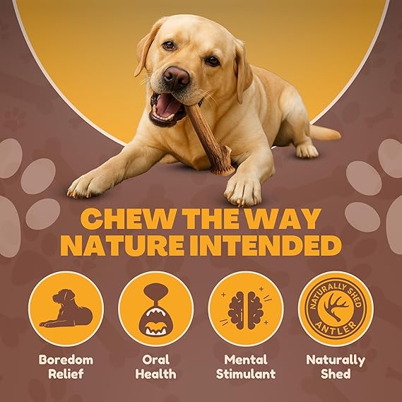 - A Must Have For Your Dog’s Chewing Instincts & Well Being - Free of any added ingredients, preservatives, dyes, or harmful chemicals, these antlers for large & medium dogs are a natural source of minerals like calcium, phosphorus, manganese, and zinc, and are great for your dog’s breath, making a great durable dental chew for your big growing dog or teething puppy.