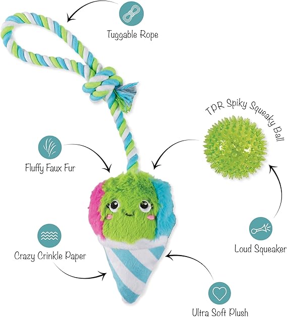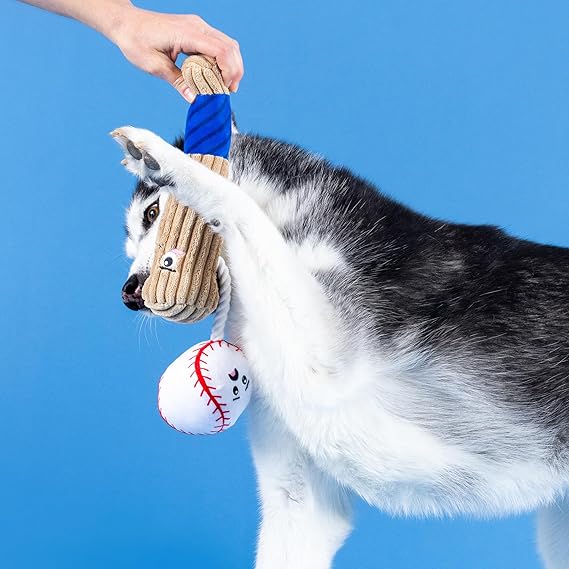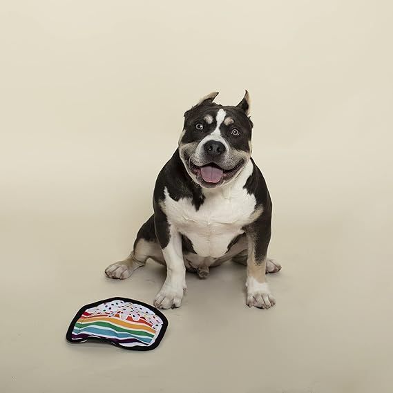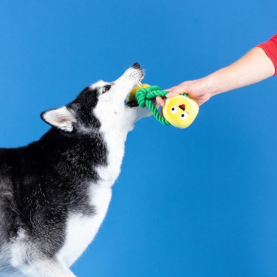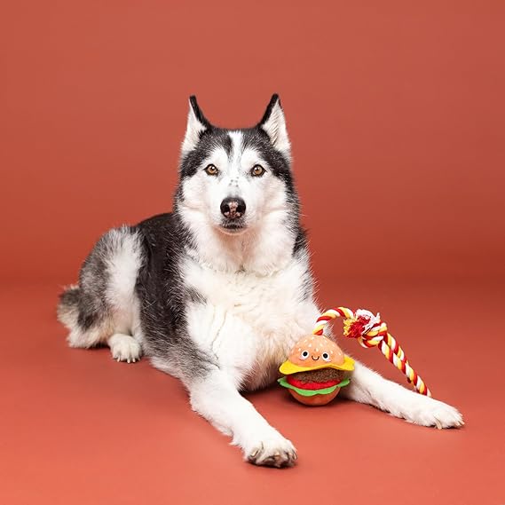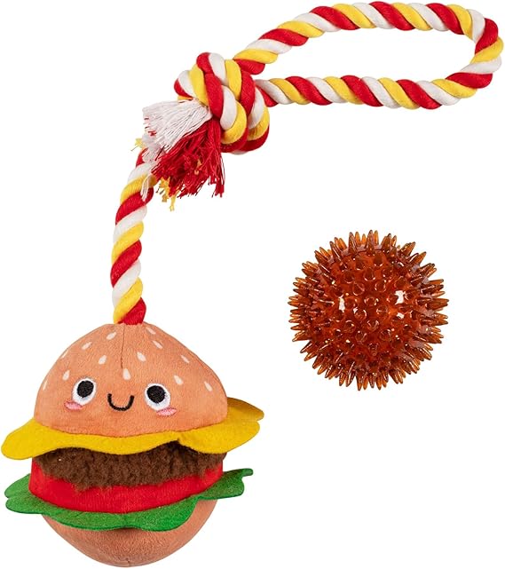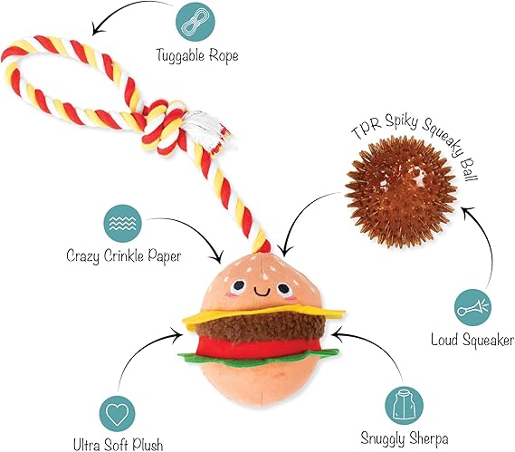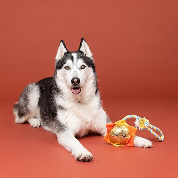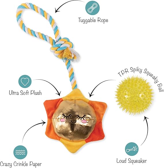 Nice to meat you! PetShop by Fringe Studio's “You're the Bun That I Want” plush toy is perfect for playtime, anytime. This toy features crazy crinkle paper, tuggable rope, and a hidden spiky TPR squeaky ball inside the sun. Once your pup chews through the plush, they'll love playing with the hidden chew toy that also helps clean teeth. Designed to encourage playful and positive chewing habits, your pup will relish every moment with this toy. Great for all dog sizes and not intended for aggressive chewers.