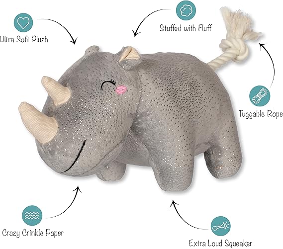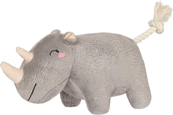 Fringe Studio Plush Dog Toy with Rope, Rhino You Want ME?, Pet Shop Collection (314594)