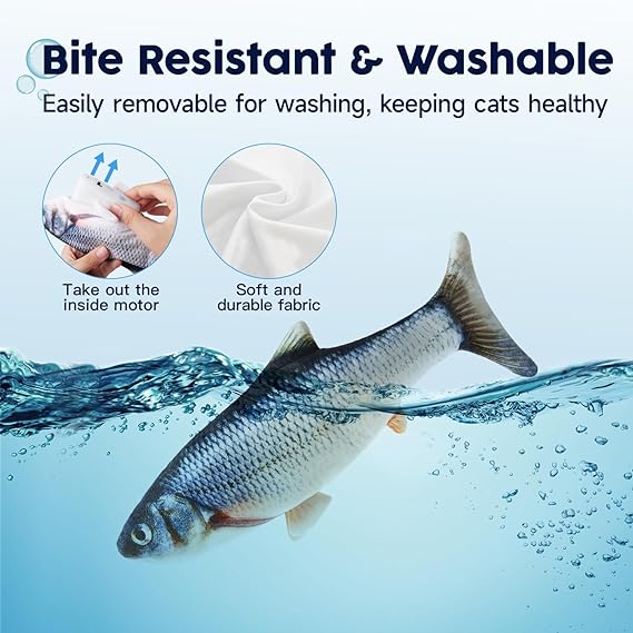 - Realistic Fish Simulation: the vivid moving fish toy looks like a real fish, an eye-catcher for cats, keeping your kitty on her paws and engaged in real time, alleviating boredom and loneliness and promoting cat's exercise when you are away from home