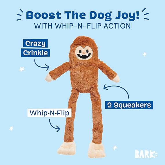 Barkbox Sasquatch Josh Dog Toy - Plush Squeaky Toy with Crazy Crinkle & Whip-N-Flip Arms - Interactive Plush Fun for Active Dogs