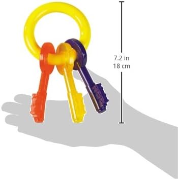Help your teething puppy learn positive chewing habits from the start with our Just for Puppies Teething Puppy Keys! Designed for pups, this soft dog chew toy encourages nondestructive chewing routines while satisfying the natural urge to chew. The bristles on this bacon chew toy help clean teeth and prevent plaque and tartar, giving your dog a brighter, healthier smile! Go ahead and throw your puppy a Nylabone!