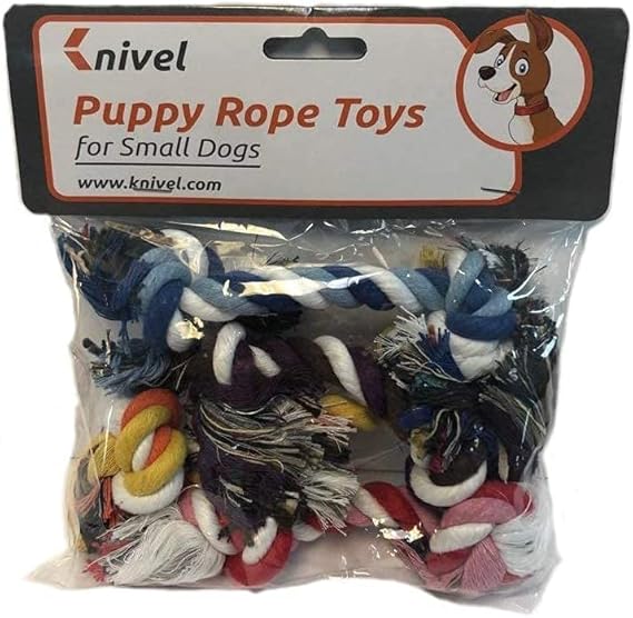 Puppy rope toys for small dogs - Set of 4 Knot Dog Toys for Playing - multi-colored Toy for Toss, Chewing Games and Dental Health. Whatever play indoors or outdoors, for interaction with your pet, our dog toy can enhance the pets feelings with the owner, your dog will be more robust and smarter. Vent your dogs destructive desires, to avoid damage to your furniture.