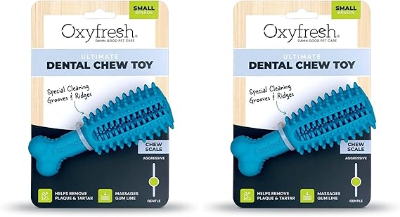Oxyfresh Dog Dental Chew Toy - Best Durable Rubber Dog Toy & Puppy Teething Toy - Helps Remove Plaque, Cleans Teeth & Freshens Breath Without Brushing (Small)