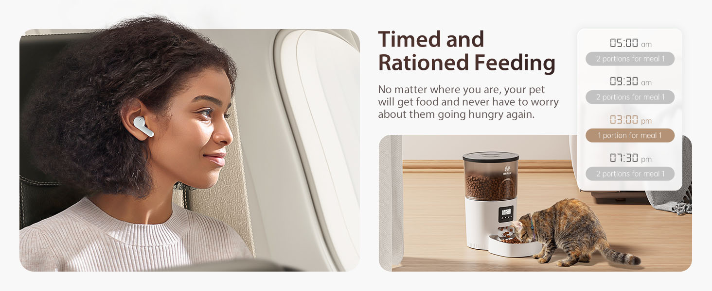 - Programmable Timed Feeding: The IMIPAW Automatic Cat Feeders helps you create a personalized, healthy feeding schedule for your pet. The 12-hour clock is easy to program and understand. You can set up multiple meals per day, and set up as many servings as your pet needs (1 serving is 7-9 grams)