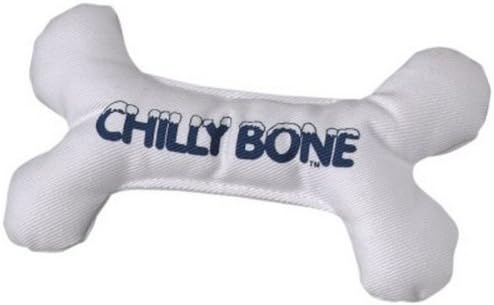 Multipet's 5-1/2-inch Chilly Bone Canvas Teething Dog Toy. This toy is designed to be a cool toy and can be used as a teething toy. The idea of the toy is simple, soak the toy under water, place the toy inside the plastic bag that is included and place it in your freezer. Once the toy is frozen it is ready for play.
