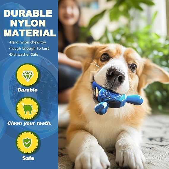 - Ideal for Puppy Teething and Chew Training - Perfect for puppy chew toys for teething, this Dog Teeth Cleaning Toy satisfies natural chewing instincts while alleviating discomfort. Made from non-toxic, BPA-free nylon,, this chew toys for dogs sis as indestructible as a dog bone. It also doubles as a dental bone for puppy fans and dog chew lovers, helping clean teeth and massage gums with every bite.