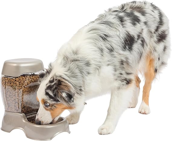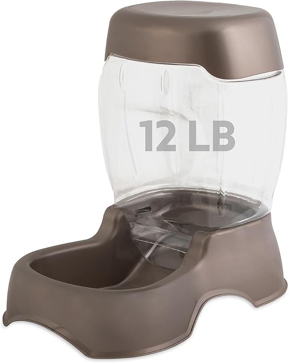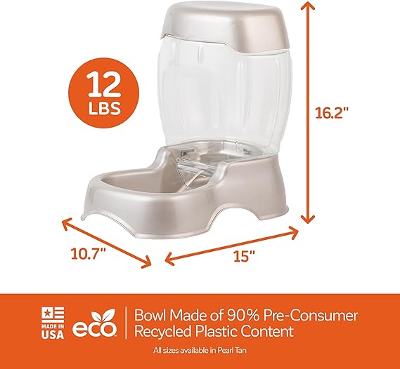 Pet mate's Pet Cafe Feeder provides a delicious supply of food for pets with less refills required for pet parents. This auto pet feeder ensures easy access to the nourishment pets need, ideal for pet parents with busy lifestyles. The food hopper gradually dispenses dry food as the bowl is emptied, keeping food fresh in the storage reservoir. The bottle locks securely into the base of the auto dog feeder for stability and features a wide opening for convenient hand-washing. Featuring easy-grab cutouts, pet parents can easily lift the pet bowl feeder without spilling. Pet mate Pet Cafe cat and dog feeders are available in three sizes, ranging from 3 to 12 gallons, to accommodate pets of any size or multi-pet households. Offered in several pearlescent colors, Pet mate's Pet Cafe gravity feeder makes a charming addition to any room of the home.