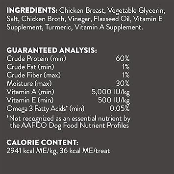 Each meaty treat contains antioxidant nutrients from vitamin A and E to support your dog’s immune system plus flaxseed oil and turmeric. Made in the USA with real chicken breast as its #1 ingredient, this jerky has a bold flavor dogs love.