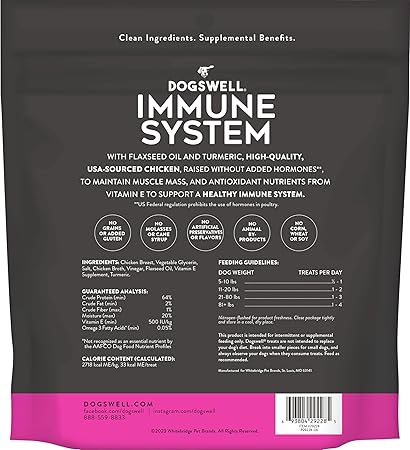 DOGSWELL Immunity & Defense, Flaxseed Oil, Turmeric, Vitamin E & A, Healthy Aging, Chicken Tenders, 15 oz. Bag