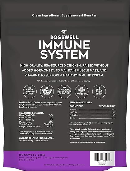 DOGSWELL Immunity & Defense, Flaxseed Oil, Turmeric, Vitamin E & A, Healthy Aging, Chicken Jerky 24 oz. (842197)