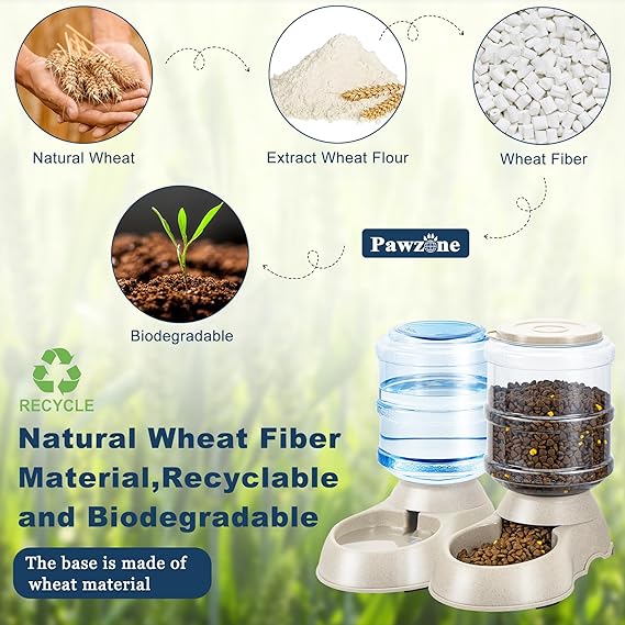 - MATERIAL OF PET WATER DISPENSER: Gravity Dog feeder Made of safe, natural food grade wheat material. Easy to move,continuous cat feeder can be used anywhere