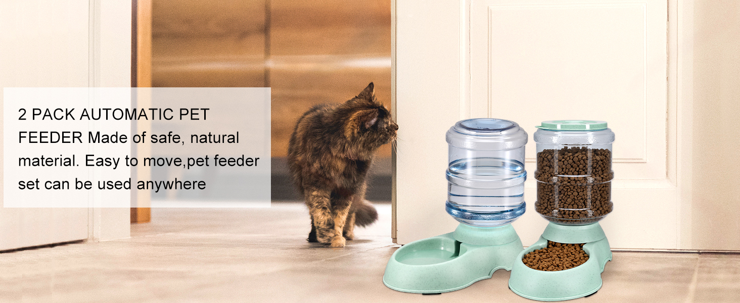 - 2 PACK CAT FEEDER AUTOMATIC: pet water dispenser suitable for small and Medium Dogs or Cats,continuous cat feeder can last about 7-9 days for small pets, 3-5 days for big pets. Don't worry that pets will be hungry. The cat automatic feeders can solve the feeding problem when you're out