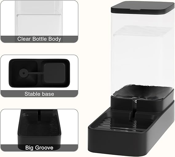 - 【No Mess】The water feeder adopts a siphon design, which can keep the water level line in the bowl at the appropriate height. When the water in the bowl decreases, the water in the bucket will automatically fill the bowl by gravity and will not overflow to the ground. You only need to regularly add water to the bucket, which is simple and convenient