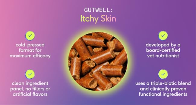 - FOR DOGS OF ALL AGES & SIZES: From puppies to seniors, GutWell Itchy Skin is a trusted itchy skin treatment for dogs of all breeds and sizes. This dog supplements for itchy skin is formulated to support long-term skin health and deliver seasonal allergy relief for dogs at every stage of life. Please Note: Packaging may vary due to design changes. Contents remain unchanged in quality and ingredients.