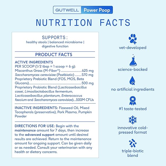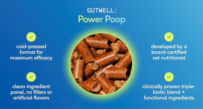 - FOR DOGS OF ALL AGES & SIZES: From tiny pups to senior dogs, GutWell Power Poop delivers daily digestive support with gentle fiber for dogs. A safe diarrhea relief for dogs, and a good alternative to dog laxative for constipation. Please Note: Packaging may vary due to design changes. Contents remain unchanged in quality and ingredients.