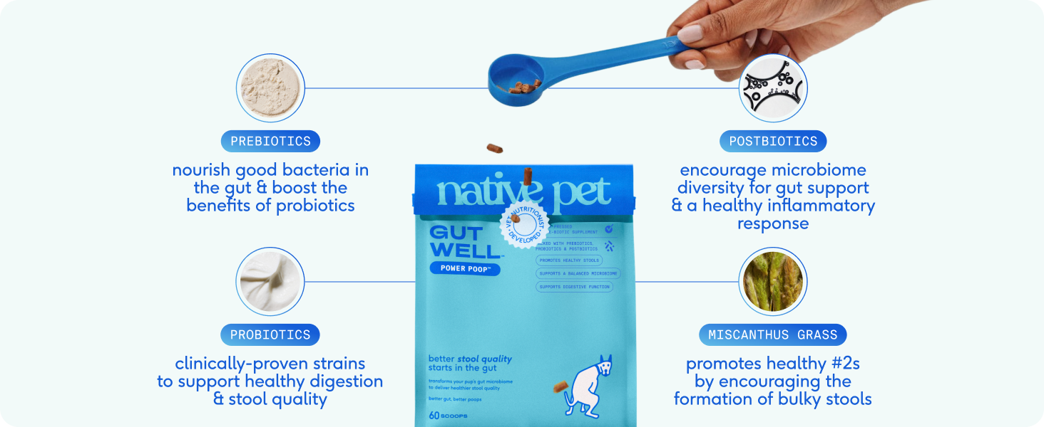 - TARGETED TRIPLE-BIOTIC BLEND TO SUPPORT HEALTHY DIGESTION: A powerful alternative to dog diarrhea medication, this pre, post, and probiotic blend balances the gut, soothes inflammation, and delivers perfect poop for dogs of all ages and sizes.