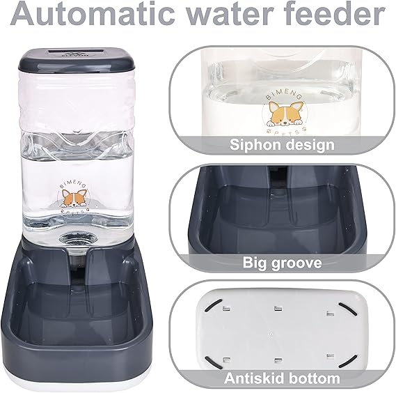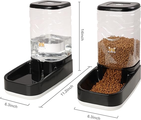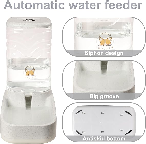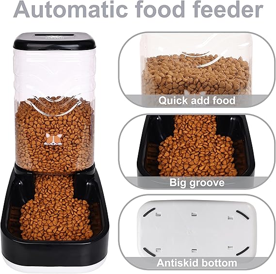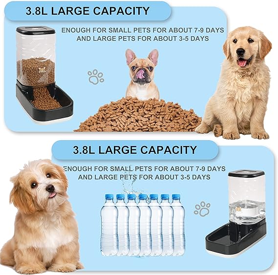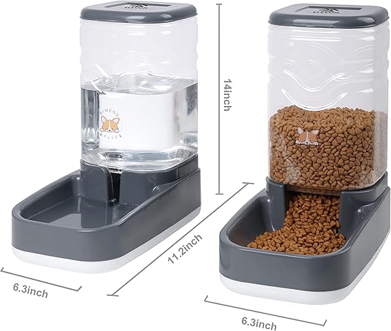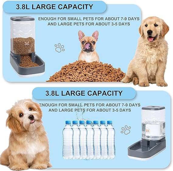 Elevon Automatic Cat Feeder, Gravity Food and Water Dispenser Bowl Set for Small Medium Dogs Animals, Pet Feeder Dispenser Storage Food, 3.8L Large Capacity, White & Gray