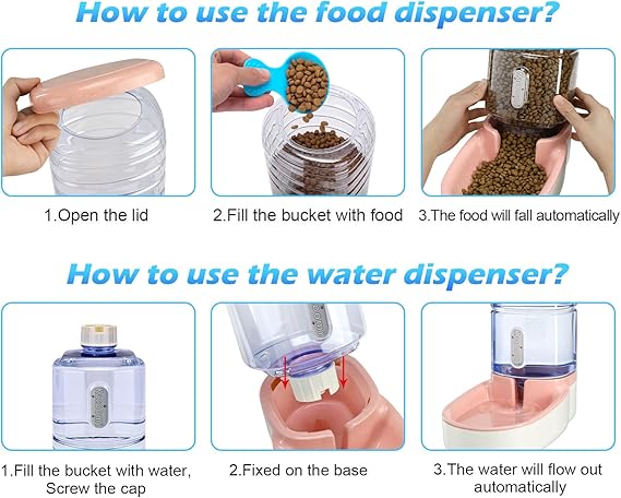 - Dog Cat Feeder and Water Dispenser: automatic cat feeder*1, water dispenser* 1. food feeder and waterer set suitable for small and medium dogs or cats.