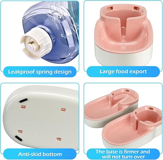 - Cat Feeder Novel Design: The water dispenser adopts spiral and spring valve design to ensure that it never leaks. With a transparent storage bottle, you can refill it in time when the food and water are used up.