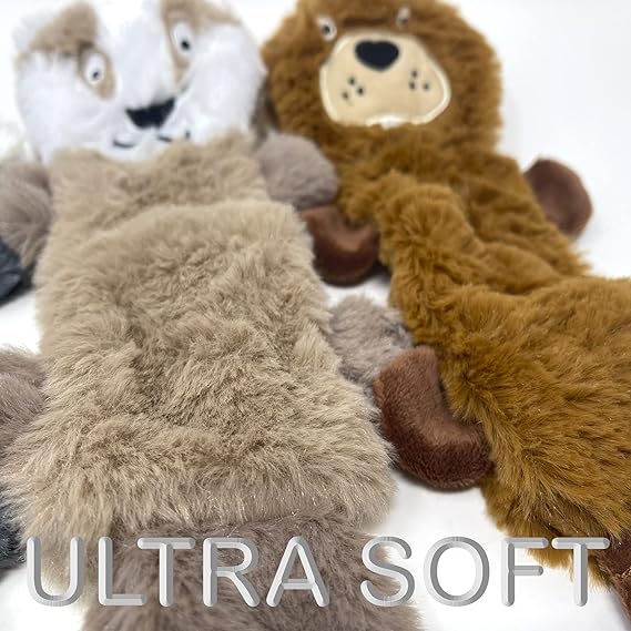 - NO STUFFING, NO MESS: Our new set of animal character crinkle toys, is now stuffingless, which means no mess to clean up.