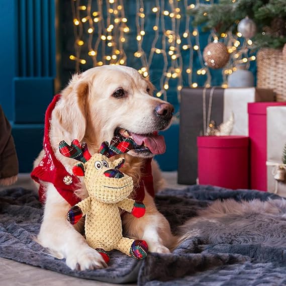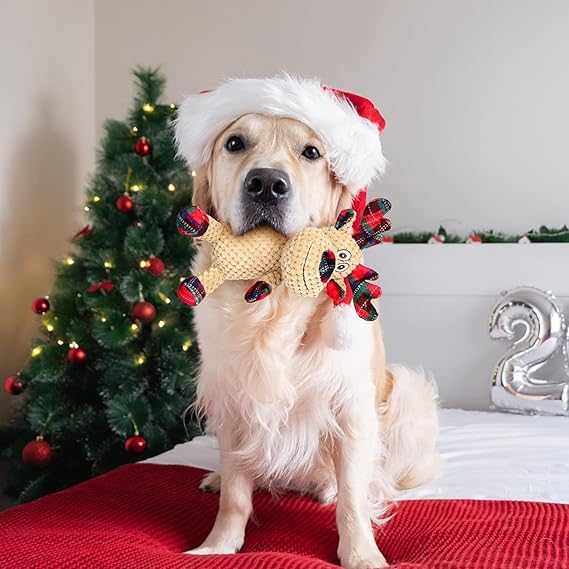 IOKHEIRA Christmas Dog Toys, Squeaky Dog Toy for Large Dogs, Cute Owl Plush Dog Toys with Crinkle Paper, Dog Chew Toys for Small Medium Breed