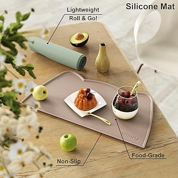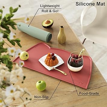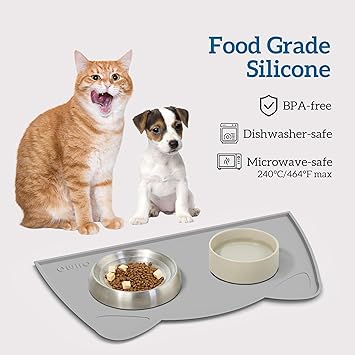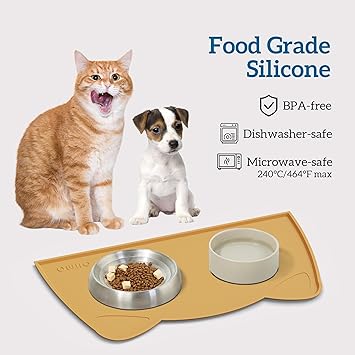 OHMO - Cat Food Mat, Silicone Pet Feeding Mat for Floor Non-Skid Waterproof Dog Water Bowl Tray, Easy to Clean Pet Placemat (Erythrinus, 18 * 9.8'')