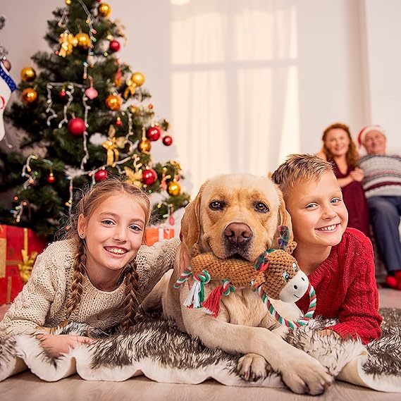IOKHEIRA Christmas Squeaky Dog Toys, Dog Plush Toys for Chewers, Durable Interactive Dog Toys for Puppies, Small, Medium, and Large Dogs (Moose)