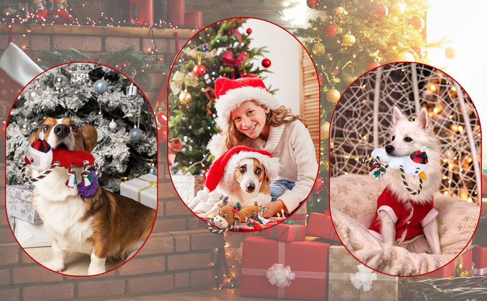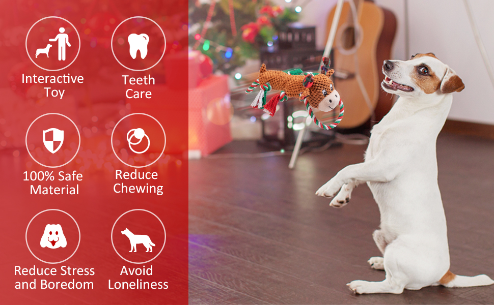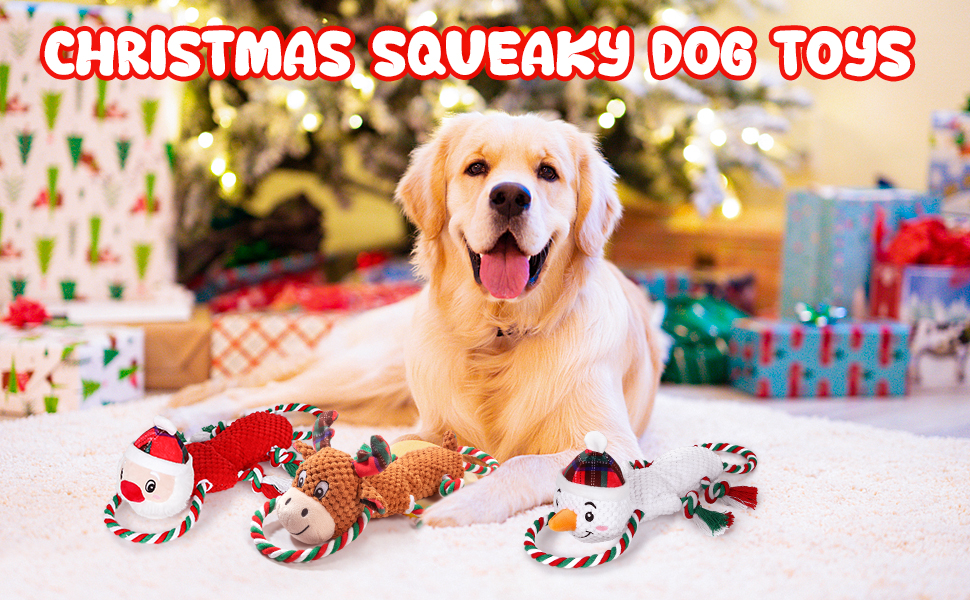- Christmas Dog Squeaky Toy: It will make a squeaky sound when you press this doggie toy or your dog chew it, fully arouse their interest to have fun, avoid destructive chewing and barking. It attract the attention of pets, keep them busy and curious, stimulate or improve dog’s IQ.