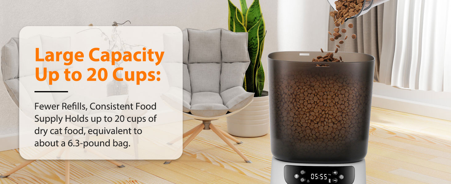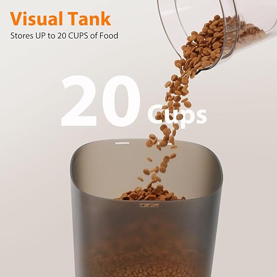 - Clog-free & High-Capacity Food Storage: With a generous 6L transparen food storage with a scheduled arrange 2 pets' feeding for 2-3 weeks at the same time. Plenty of storage space reduces the need for frequent refills, and transparent granary lets you observe the grain levels in real time, ensuring you know precisely when it's time for a refill.