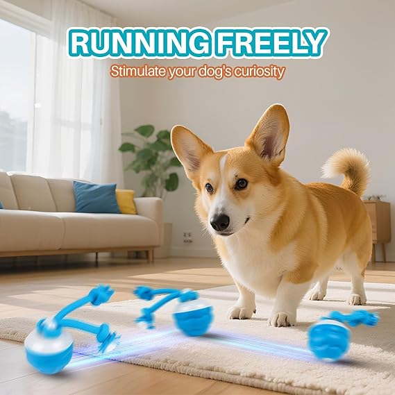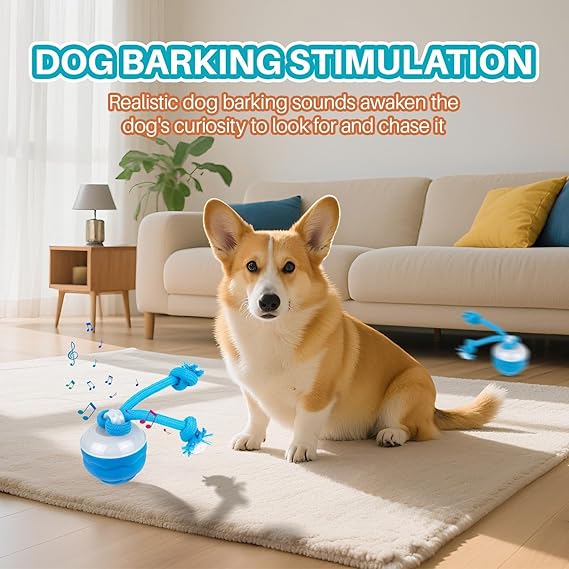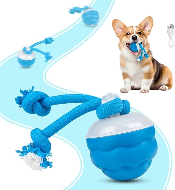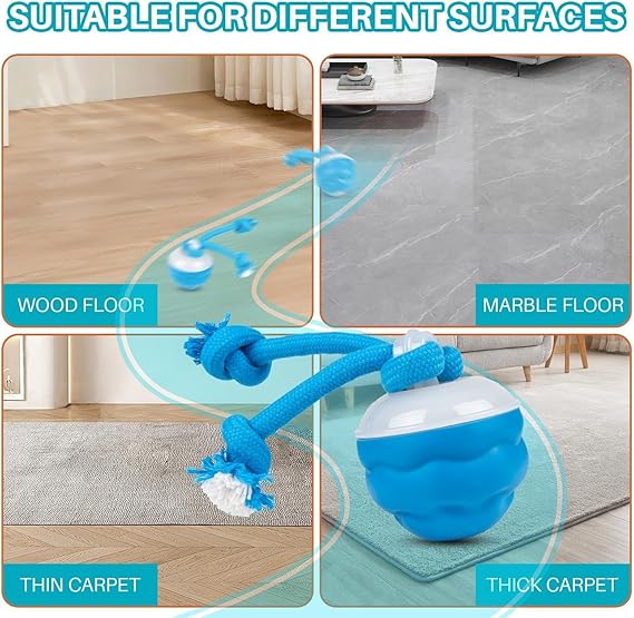 Interactive Dog Toys Ball - Fun Moving Dog Toys to Keep Them Busy | Smart Jumping Ball for Dogs with Three Modes, Rechargeable Automatic, Knot Design, Bite-Resistant and Teeth-Cleaning(Blue)