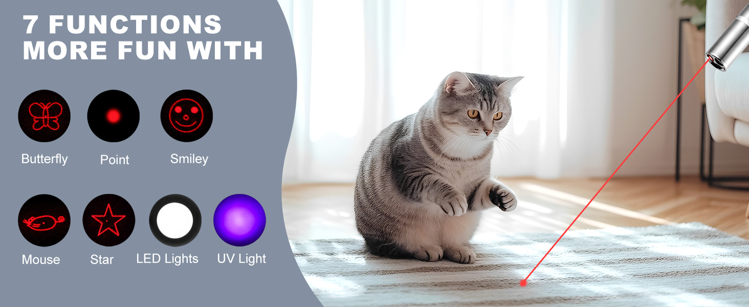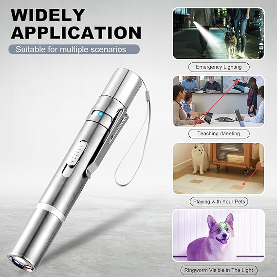 - 【Durable & Portable Design】Built with a stainless steel housing, anti-peel coating, and a metal clasp, this laser toy measures just 4.52×0.67×0.67 inches. Its compact size allows for easy portability—take it anywhere in your pocket or bag for fun on the go.