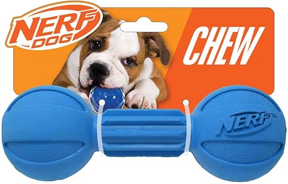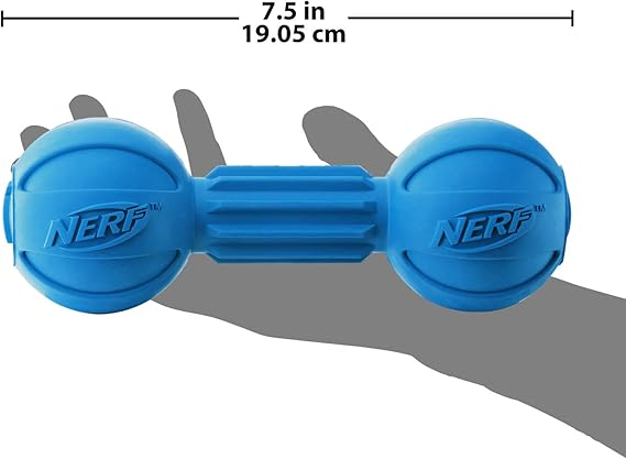 Nerf Dog Rubber Chew Barbell Dog Toy For Aggressive Chewers, Lightweight, Durable and Water Resistant, 7.5 Inches, For Medium/Large Breeds, Single Unit, Blue