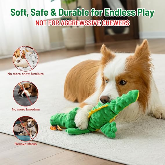 - 【Indoor & Outdoor Fun】 This alligator dog toy is perfect for play both inside and outside. It keeps dogs entertained and engaged, helping prevent boredom and destructive behavior at home. A great way to release stress and protect your furniture while giving your pup endless fun.