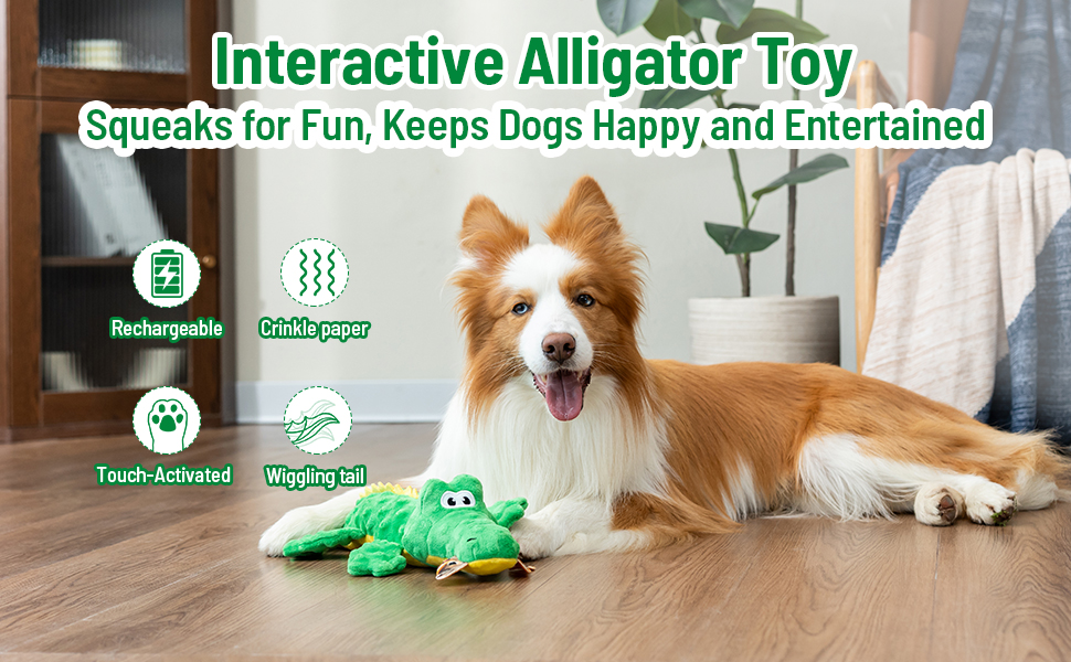 Alligator Interactive Dog Toys, Motion Activated Plush Dog Toys to Keep Dogs Busy, Wiggling Tail Interactive Dog Toy for Small/Medium/Large Dogs, USB Rechargeable Puppy Toys