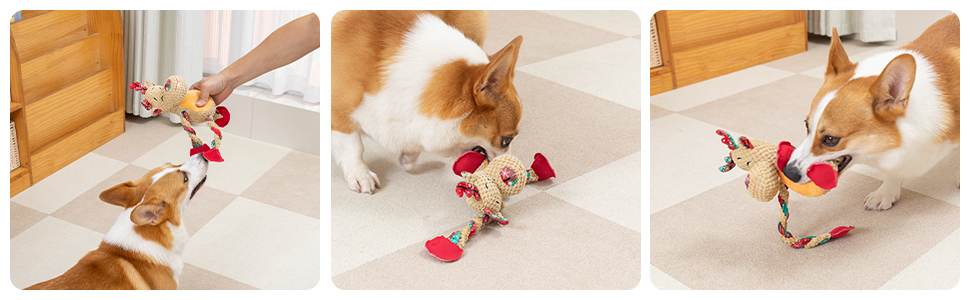 - Safe to Chew: Crafted from non-toxic, safe materials, our plush Christmas dog toy ensures hours of safe play, indoors or outdoors. This toy is the perfect Christmas gift for your pet, keeping them occupied and stimulated. Its festive design makes it a delightful surprise for your dog, celebrating the season with cheer. Whether it's for Christmas, Thanksgiving, or any holiday, this toy is a fantastic way to show your pet how much you care.