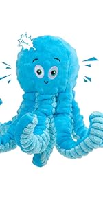 - Funny Squeaky: This dog squeaky plush toy for puppy built-in durable squeaker that emits a sound when pets bitting, allow your dogs to chew it for reducting boredom, cure separation anxiety in dog and its ears and tails were made of crinkle paper that helps entice play for extra excitement.