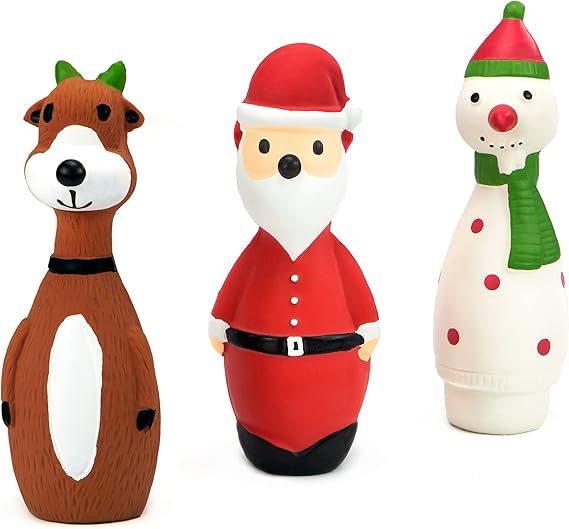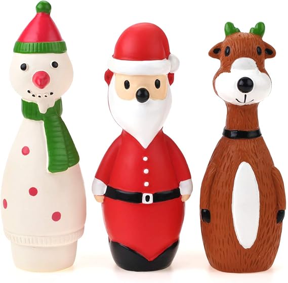 CHIWAVA 3 Pack Small Christmas Dog Toys for Interactive Dogs Latex Squeaky Santa Toy