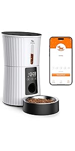 - 【Easier Programming with App】 Connect the automatic cat feeder to 2.4GHz Wi-Fi via bluetooth, you can give extra snacks to your cats and dogs from anywhere and anytime, and flexible setting feeding plan. Up to 10 meals daily with 1-50 portions(1/10cup per portion)