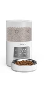 Petory Timed Automatic Cat Feeders - 4L Programable Dry Food Dispenser for Cats and Small Medium Dogs 6 Meals with Desiccant Bag Dual Power Supply 10S Voice Recorder