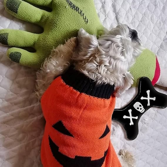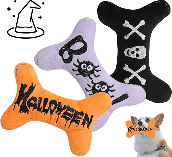 3 Pack Small Dogs Toy for Halloween, Plush Squeaky Puppy Bone Toy Holiday Dog Gifts