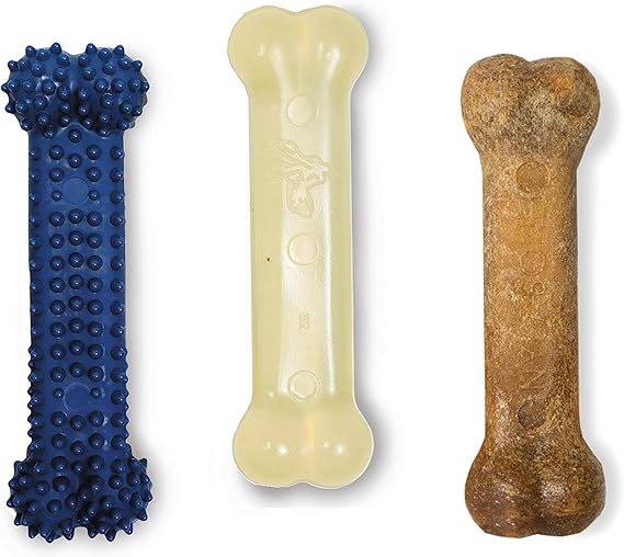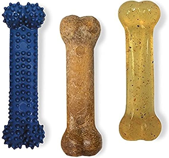 Nylabone Original Bone Flexi Chew toy for Dogs, Dog Toys for Moderate Chewers, Chicken & Bacon Flavor, X-Small - Up to 15 lbs, 3 Pack