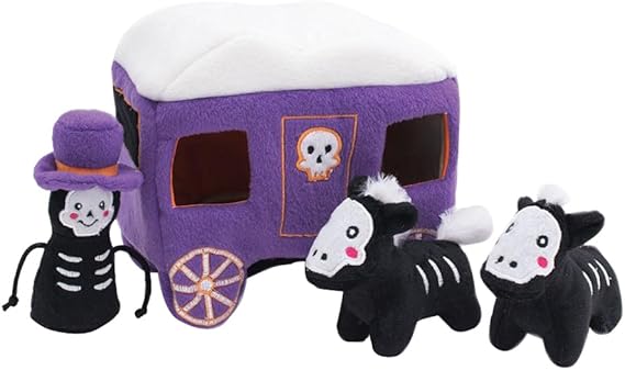 ZippyPaws Halloween Burrow Interactive Dog Toys - Hide and Seek Dog Toys and Puppy Toys, Colorful Squeaky Dog Toys, and Plush Dog Puzzles - Haunted Carriage