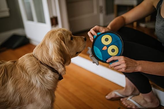 Hyper Pet Firehose Fyers Owl is an Interactive Dog Toy Flyer that is Made from Durable Firehose Material and has a loud Squeaker Inside. Throw it. Toss it. Love it.