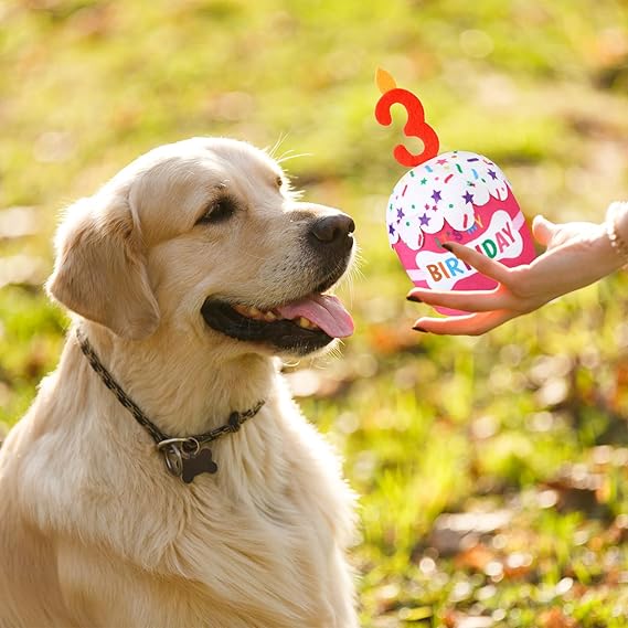 - Adorable Design: dog birthday accessories for girl boy gifts uses a special birthday cake as the appearance, and the top uses a 3D digital design, which fits your dog's 3rd birthday theme. Pink represent cuteness. The soft surface and high elastic filling are designed with durability. Suitable for birthday girls and birthday boys, the soft and squeaky plush toys are nice for teething, chewing and playing, and also help clean your dog's mouth and teeth, adding more fun to play