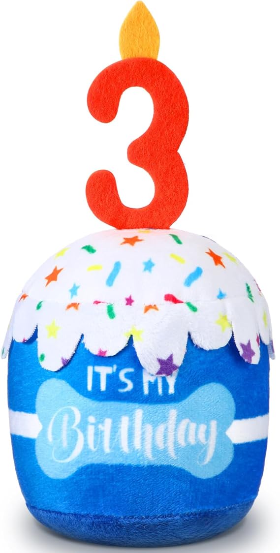 - Dog 3rd Birthday Cake Toy: a cake prepared for quadruped friends to celebrate their 3rd birthday, celebrating your dogs' birthdays with squeaking cream cake toys, so that dogs can also have their own birthday cake on their birthdays. Blow out the candles and make wishes. Become the nice birthday gift and special decoration for your dog's birthday party