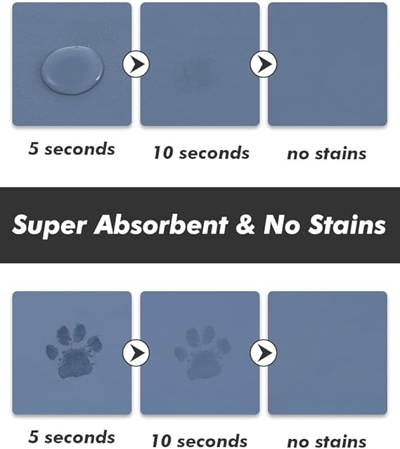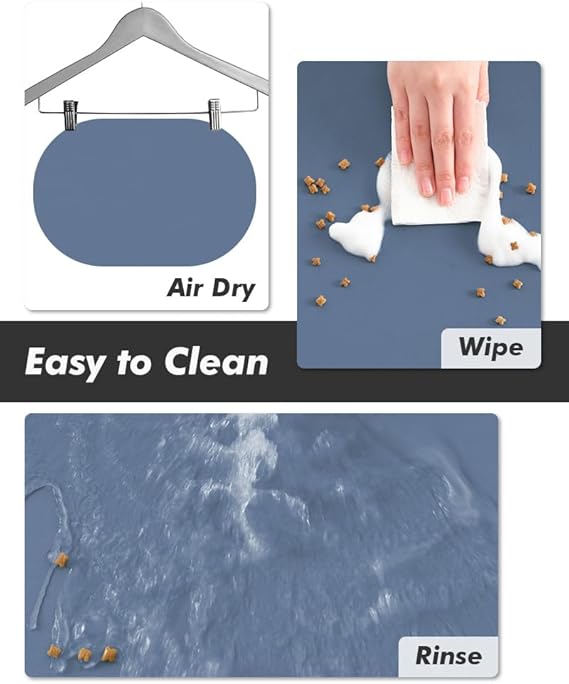- 【Super Absorbent & Quick Dry】Perfect pet supplies!This pet food mat's special absorbent surfaces hide any messy stains completely. Super absorbent and quick-drying ability to avoid wetting pet paws even for messy drinkers. Keep the pet's eating environment tidy and clean.